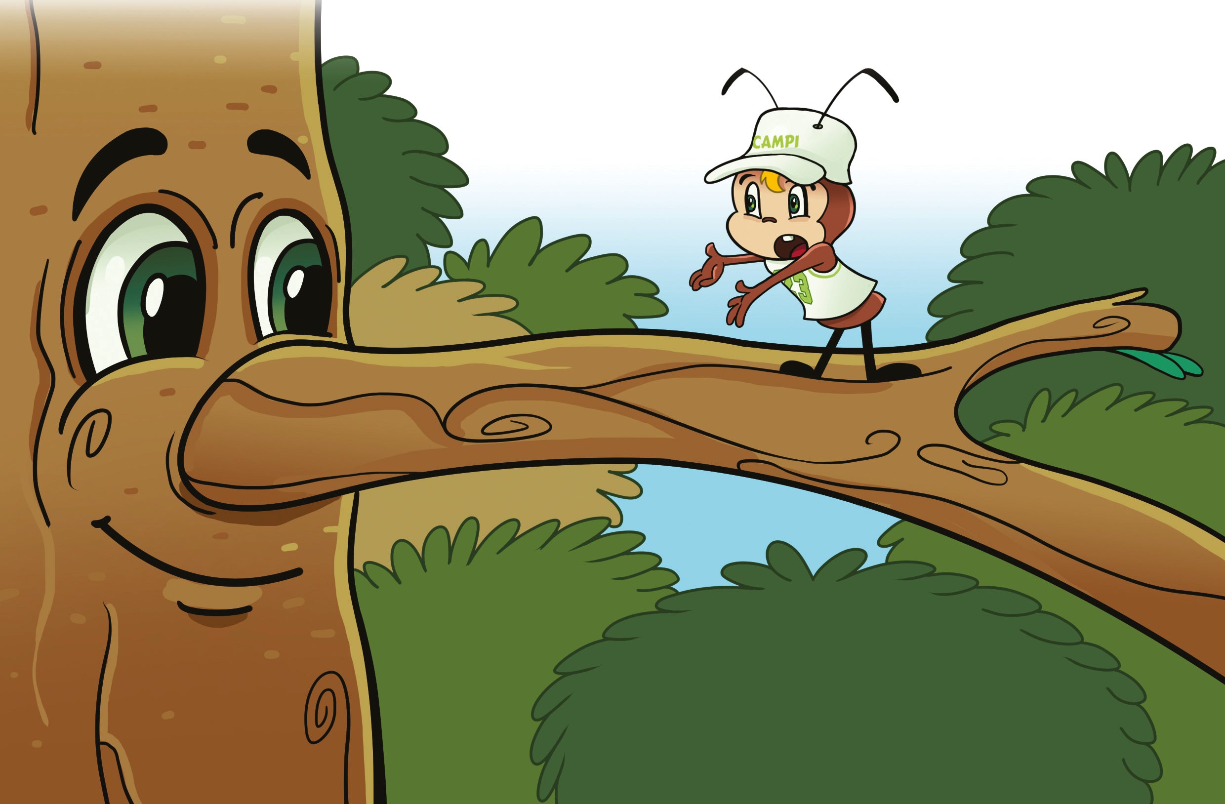 Campi es nuestra hormiguita aventurera, la mascota de los campings, cuya misión es inspirar sostenibilidad, enseñar jugando y hacer de cada visita al camping una experiencia inolvidable.